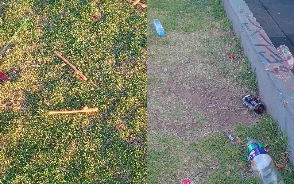 Los residentes compartieron imágenes que exponen la gran cantidad de botellas y demás residuos que se acumularon en el parque local.