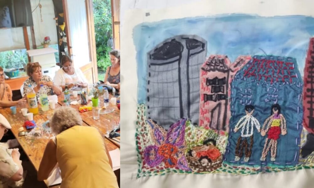 Vecinas y vecinos del barrio participan de una iniciativa nacional para bordar los nombres de personas detenidas-desaparecidas y unir los retazos en una bandera que será...