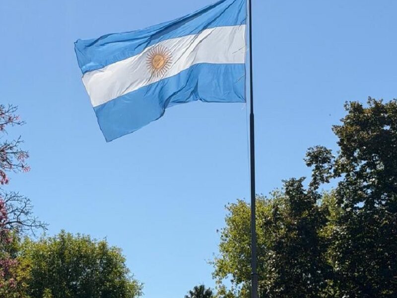Al izarla, los uniformados saludaron al estandarte patrio en una ceremonia espontánea, informó la Asociación Vecinal Barrio Cornelio Saavedra.