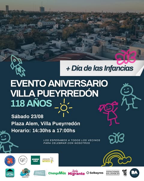 La Comuna 12 de la Ciudad de Buenos Aires informó que el sábado 23 de agosto desde las 14.30 hasta las 17 se realizará un evento en la Plaza Alem (Larsen y Artigas) para conmemorar el Día del Barrio de Villa Pueyrredón y el Día del Niño.