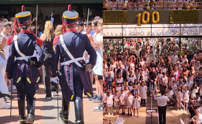 Con granaderos, música y gran presencia de la comunidad, la Escuela Provincia de Santa Fe realizó el acto por sus 100 años