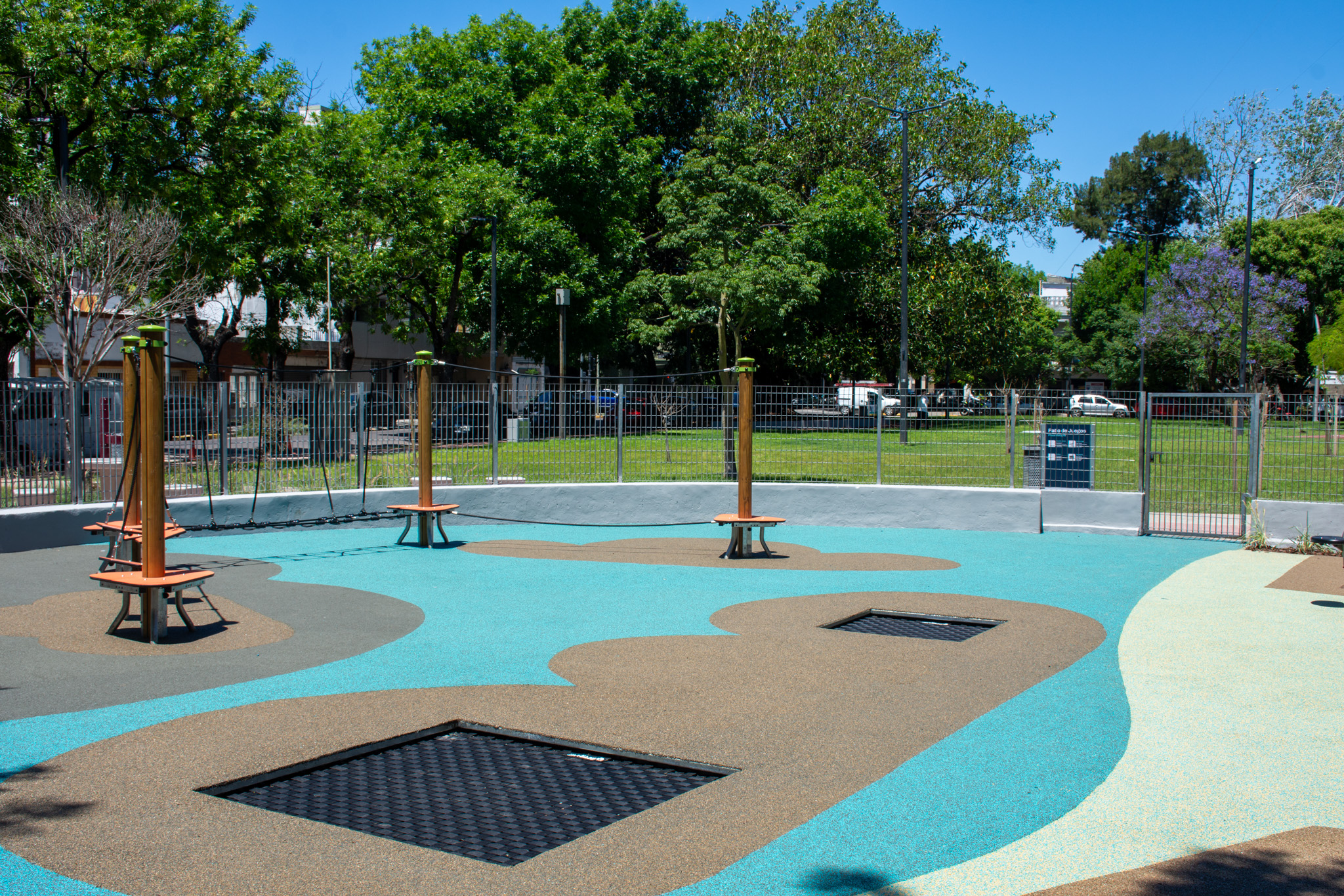 Parque Goyeneche: nuevos caminos, posta de calistenia, básquet 3×3 y patio infantil en la Plaza Hungría de Saavedra